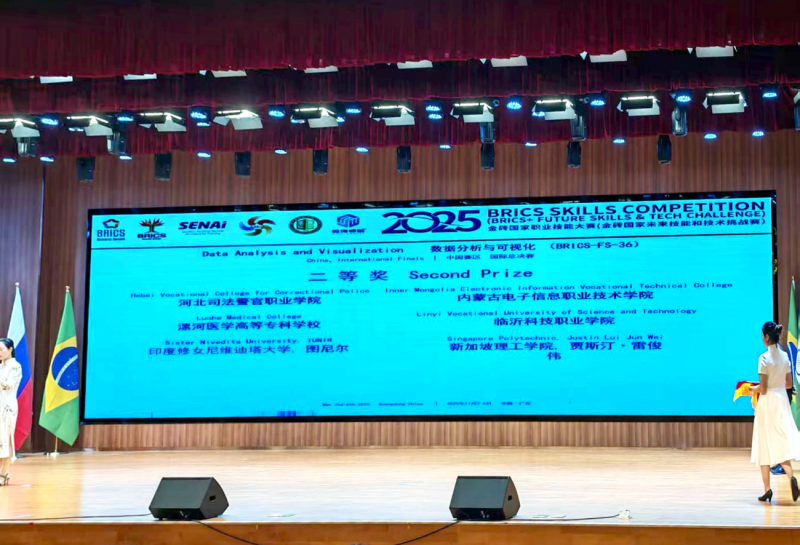 11月4日-5日,2025年金磚國家職業(yè)技能大賽數(shù)據(jù)分析與可視化賽項總決賽在廣東建設(shè)職業(yè)技術(shù)學(xué)院清遠(yuǎn)校區(qū)圓滿落幕。漯河醫(yī)學(xué)高等專科學(xué)校公共衛(wèi)生與健康營養(yǎng)學(xué)院參賽隊伍在國際賽場上奮勇爭先,從來自9個國家的137支精英隊伍中脫穎而出,喜獲二等獎,為學(xué)校人才培養(yǎng)改革再添亮眼成果。