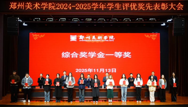 2025年11月13日下午,鄭州美術(shù)學院2024-2025學年評優(yōu)獎先表彰大會在圖書館報告廳舉行。黨委書記王冰,校長石品,黨委副書記李亞飛,副校長王貝、開路、丁孝佳,學工部全體人員、獲獎學生代表及各年級學生代表共同出席這一榮耀時刻。大會由李亞飛主持。