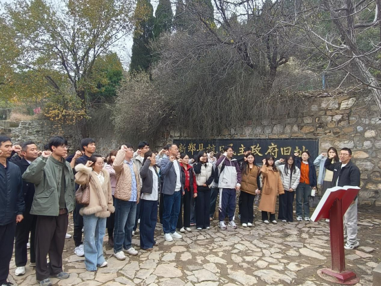 體育教研室主任田洋洋老師說:11月12日,我與師生們一同走進(jìn)新鄭市抗日民主政府舊址,開展實(shí)踐教學(xué)與主題黨日活動(dòng)。駐足舊址的一磚一瓦間,聆聽革命先輩的奮斗事跡,仿佛穿越時(shí)空感受到了烽火歲月里的赤誠與堅(jiān)守。隨后的登山之行,更讓我體會(huì)到革命之路的艱辛與今日幸福生活的來之不易。