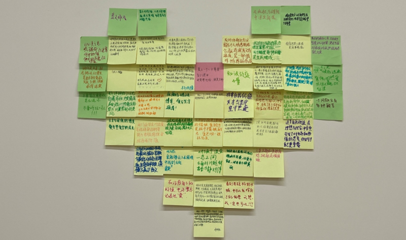 組織觀看心理電影《美麗心靈》,并邀請學生用便簽記錄觀后感。