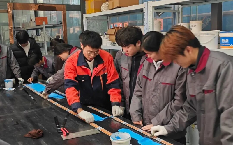 實(shí)操技能強(qiáng)化:企業(yè)一線技術(shù)人員“手把手”教學(xué),帶領(lǐng)學(xué)生系統(tǒng)學(xué)習(xí)防水材料的原材料檢驗(yàn)、產(chǎn)品配方設(shè)計、產(chǎn)品檢驗(yàn)檢測等核心技能,將校園所學(xué)理論知識轉(zhuǎn)化為可落地的動手能力;