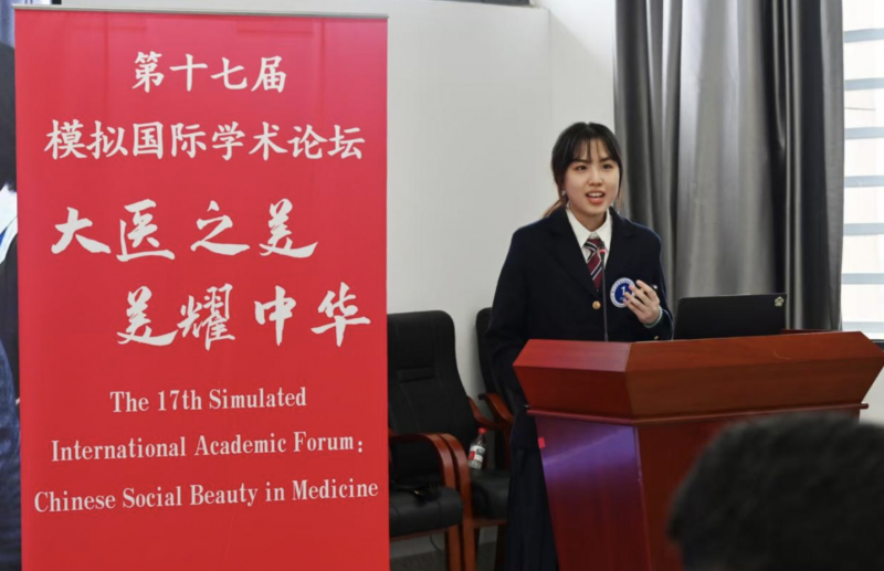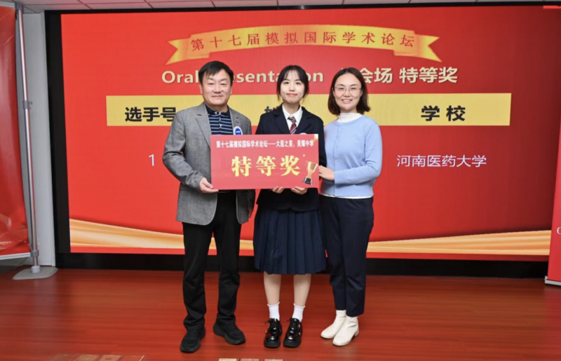 近日,在第十七屆模擬國際學術論壇決賽上,河南醫(yī)藥大學峻極書院2023級菁英醫(yī)師班學生楊怡涵,在外語學院教師雍文明、石帥的指導下,歷經多輪選拔,憑借扎實的專業(yè)基礎、嚴謹的學術思維與出色的英語表達能力,在競爭激烈的英語匯報大賽環(huán)節(jié)中脫穎而出,榮獲最高獎項特等獎。