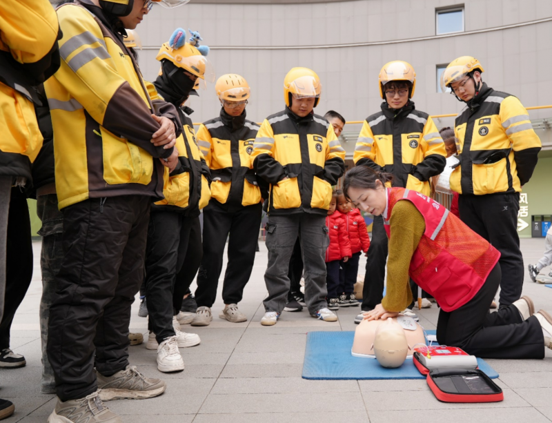 急救技能大賽暨成果頒獎活動,成為檢驗(yàn)項(xiàng)目成效的生動舞臺。決賽現(xiàn)場還原了戶外突發(fā)暈倒、異物卡喉等真實(shí)場景,選手們沉著完成環(huán)境評估、患者溝通、精準(zhǔn)施救等全流程操作,標(biāo)準(zhǔn)的按壓動作、規(guī)范的除顫流程、果斷的急救處置,展現(xiàn)出專業(yè)的應(yīng)急救護(hù)素養(yǎng)。經(jīng)過嚴(yán)格評審,活動最終評選出一、二、三等獎及優(yōu)秀獎、最佳參與獎共 30 名,同時為支持項(xiàng)目推進(jìn)的站點(diǎn)負(fù)責(zé)人頒發(fā)最佳支持獎。“現(xiàn)在不僅能準(zhǔn)時送餐,遇到緊急情況還能救人性命,這技能學(xué)的值!” 一位參賽騎手的感慨,道出了項(xiàng)目的實(shí)效價(jià)值。