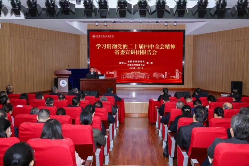按照省委統(tǒng)一安排,11月21日上午,學(xué)習(xí)貫徹黨的二十屆四中全會精神省委宣講團報告會在河南財政金融學(xué)院舉行。省委宣講團成員、河南大學(xué)黨委書記季波作宣講報告。該校黨委書記王雪云主持報告會。學(xué)校領(lǐng)導(dǎo)班子成員、中層干部和師生代表近300人現(xiàn)場聆聽報告。