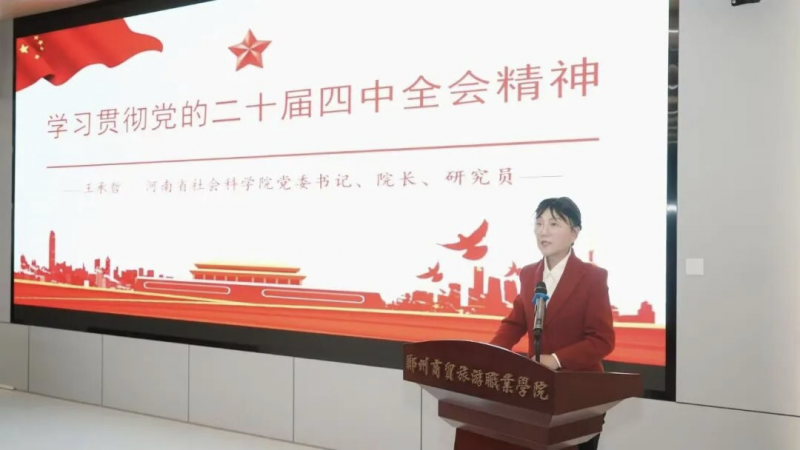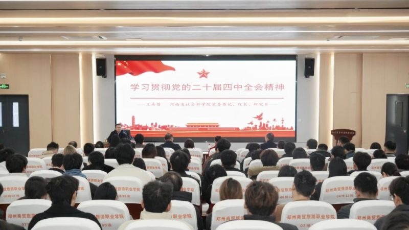 為深入學(xué)習(xí)貫徹黨的二十屆四中全會(huì)精神,切實(shí)把全校師生的思想和行動(dòng)統(tǒng)一到黨中央關(guān)于制定“十五五”規(guī)劃、推進(jìn)中國(guó)式現(xiàn)代化的決策部署上來,11月21日,鄭州商貿(mào)旅游職業(yè)學(xué)院精心組織召開黨委理論學(xué)習(xí)中心組(擴(kuò)大)學(xué)習(xí)會(huì)議暨學(xué)習(xí)貫徹黨的二十屆四中全會(huì)精神專題輔導(dǎo)報(bào)告會(huì)。會(huì)議特別邀請(qǐng)河南省社會(huì)科學(xué)院黨委書記、院長(zhǎng)王承哲研究員作輔導(dǎo)報(bào)告。學(xué)校黨政領(lǐng)導(dǎo)班子成員、兩委委員、各直屬黨組織書記、各部門及二級(jí)學(xué)院負(fù)責(zé)人、師生代表參加學(xué)習(xí)。本次會(huì)議由校黨委書記張睿主持。