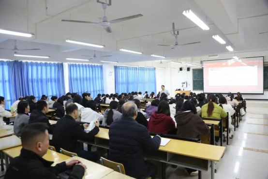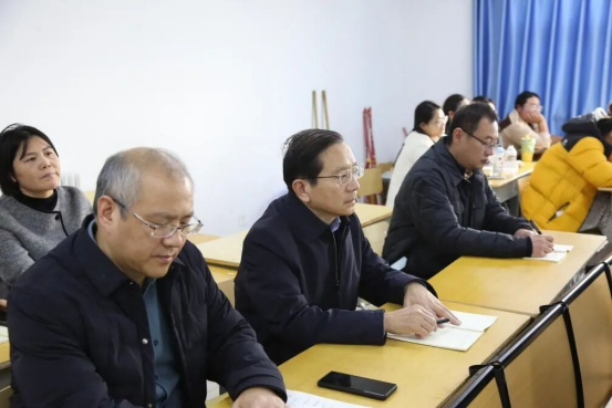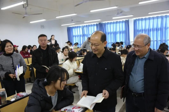 為深入貫徹落實(shí)立德樹人根本任務(wù),切實(shí)加強(qiáng)學(xué)校思政課建設(shè),11月26日,鄭州衛(wèi)生健康職業(yè)學(xué)院黨委書記劉暢、校長(zhǎng)封銀曼帶頭走進(jìn)思政課堂,與學(xué)生同堂聆聽"毛澤東思想和中國(guó)特色社會(huì)主義理論體系概論""思想道德與法治"兩門課程,為思政課教學(xué)質(zhì)量提升和學(xué)生成長(zhǎng)成才提供指導(dǎo)。校黨委宣傳部部長(zhǎng)、馬克思主義學(xué)院黨總支書記涂俊禮、校辦主任劉浩等有關(guān)部門負(fù)責(zé)同志陪同聽課。