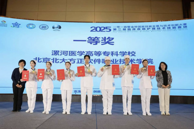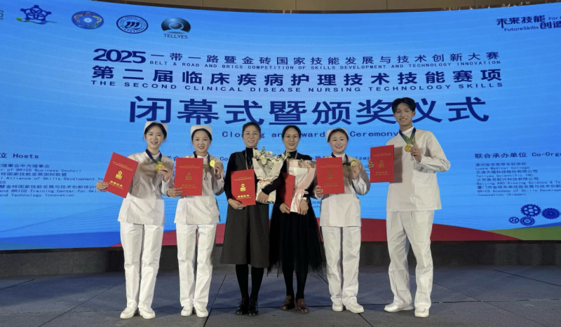 近日,從2025“一帶一路”暨金磚國(guó)家技能發(fā)展與技術(shù)創(chuàng)新大賽第二屆臨床疾病護(hù)理技術(shù)技能賽項(xiàng)決賽現(xiàn)場(chǎng)傳來(lái)喜訊。漯河醫(yī)學(xué)高等專科學(xué)校護(hù)理學(xué)院學(xué)生邵志健、孫晶、仝力文、徐碧菡組成的參賽團(tuán)隊(duì),憑借扎實(shí)的專業(yè)技能、出色的團(tuán)隊(duì)協(xié)作和穩(wěn)定的現(xiàn)場(chǎng)發(fā)揮,從眾多參賽隊(duì)伍中脫穎而出,榮獲大賽一等獎(jiǎng),同時(shí)教師陳永芳、楊金旭獲得優(yōu)秀指導(dǎo)教師,展現(xiàn)了漯河醫(yī)專護(hù)理團(tuán)隊(duì)的卓越風(fēng)采。