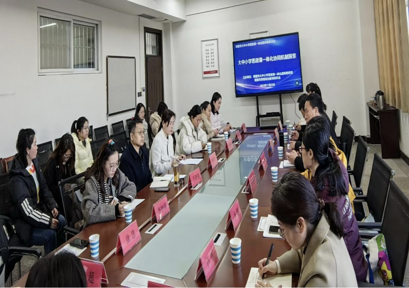 冬意漸濃,研思不輟。11月26日上午,鶴壁市大中小學(xué)思政課一體化集體教研活動(dòng)在鶴壁職業(yè)技術(shù)學(xué)院馬克思主義學(xué)院會(huì)議室成功舉行。本次活動(dòng)以“大中小學(xué)思政課一體化協(xié)同機(jī)制探索”為主題,由鶴壁市教育體育局、鶴壁市思想政治教育研究會(huì)主辦,鶴壁市大中小學(xué)思政課一體化虛擬教研室承辦。活動(dòng)由鶴壁市大中小學(xué)思政課一體化虛擬教研室主任楊利紅主持,來自全市大中小學(xué)的近30名教師參加。