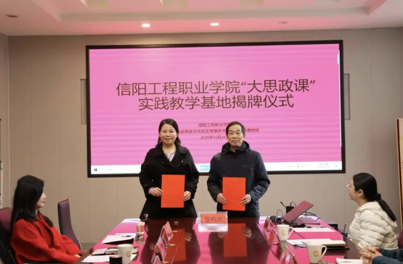 11月25日下午,信陽(yáng)工程職業(yè)學(xué)院與固始縣博物館 “大思政課”實(shí)踐教學(xué)基地簽約暨揭牌儀式舉行。此次活動(dòng)標(biāo)志著該校打破傳統(tǒng)課堂壁壘,將思政教育與地方特色文化深度融合,創(chuàng)新推出“行走的思政課”育人新模式,為培養(yǎng)擔(dān)當(dāng)民族復(fù)興大任的時(shí)代新人注入強(qiáng)勁動(dòng)力。