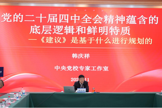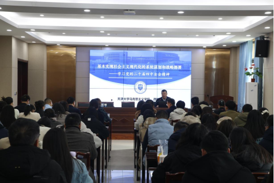 在專家報告階段,韓慶祥教授以《黨的二十屆四中全會精神蘊含的底層邏輯和鮮明特質(zhì)》為題,從“調(diào)查研究、哲學(xué)思考、戰(zhàn)略謀劃、人民至上、守正創(chuàng)新、胸懷天下”六個維度,深入解讀黨的二十屆四中全會精神的核心要義;東北大學(xué)田鵬穎教授圍繞國家“十五五”規(guī)劃,系統(tǒng)闡釋了五年規(guī)劃作為黨治國理政重要方式的歷史意義、總體思路與學(xué)理基礎(chǔ);天津大學(xué)顏曉峰教授聚焦黨的二十屆四中全會精神,解讀了基本實現(xiàn)社會主義現(xiàn)代化的系統(tǒng)謀劃和戰(zhàn)略部署,三位專家的報告為現(xiàn)場師生帶來深刻的學(xué)術(shù)啟發(fā)。