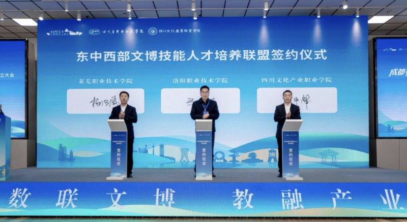 11月26日,由洛陽(yáng)職業(yè)技術(shù)學(xué)院聯(lián)合四川文化產(chǎn)業(yè)職業(yè)學(xué)院、萊蕪職業(yè)技術(shù)學(xué)院發(fā)起成立的“東中西部文博技能人才培養(yǎng)聯(lián)盟”在四川文化產(chǎn)業(yè)職業(yè)學(xué)院正式揭牌,成為全國(guó)首個(gè)貫通東中西部的文博類職業(yè)教育協(xié)作平臺(tái)。洛陽(yáng)職業(yè)技術(shù)學(xué)院副校長(zhǎng)張志友出席揭牌儀式并現(xiàn)場(chǎng)簽約。