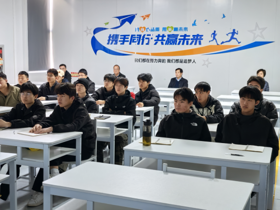 隨后,焦洪濤一行走進產(chǎn)業(yè)學院的課堂與學生座談,指出要將工業(yè)機器人的崗位標準融入課程體系,將實際生產(chǎn)中的案例引入課堂;了解行業(yè)最新動態(tài)和技術需求,及時調(diào)整教學內(nèi)容。他表示,要將企業(yè)的工匠精神、勞模文化融入工業(yè)機器人專業(yè)的思政教育,引導學生樹立正確的職業(yè)觀和價值觀。根據(jù)企業(yè)反饋及時調(diào)整教學內(nèi)容和教學方法,確保人才培養(yǎng)質量符合行業(yè)需求。