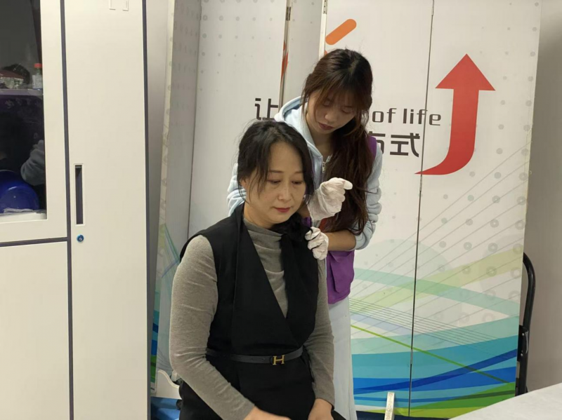 本次活動(dòng)聚焦教職工因長期伏案工作、久坐久站易引發(fā)的肩頸僵硬、腰背酸痛等常見問題,由體育與健康學(xué)院專業(yè)教師全程指導(dǎo),運(yùn)動(dòng)健康指導(dǎo)專業(yè)的同學(xué)們化身志愿者,憑借扎實(shí)的專業(yè)知識(shí)與嫻熟的實(shí)操技能提供服務(wù)。活動(dòng)現(xiàn)場設(shè)置三大核心服務(wù)項(xiàng)目:肩頸專項(xiàng)放松通過揉捏、點(diǎn)壓、撥筋等精準(zhǔn)手法,有效緩解肌肉緊張與僵硬,改善頸部活動(dòng)度;腰背勞損調(diào)理運(yùn)用掌揉、滾法、穴位按壓等方式,放松腰背部肌肉、減輕腰椎壓力,舒緩久坐久站帶來的酸痛感;定制化服務(wù)則充分尊重個(gè)體差異,志愿者在服務(wù)前細(xì)致溝通教職工疼痛部位與耐受度,靈活調(diào)整手法力度與服務(wù)時(shí)長,確保每人15-20分鐘的高質(zhì)量體驗(yàn)。