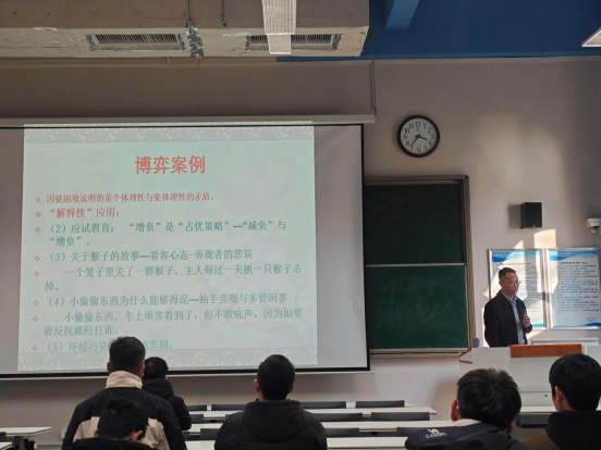 講座中,曾慶福教授深入剖析了多個(gè)經(jīng)典博弈模型,揭示了個(gè)體理性與集體理性的深層矛盾,論述了博弈選擇時(shí)應(yīng)該遵循的基本原則。
