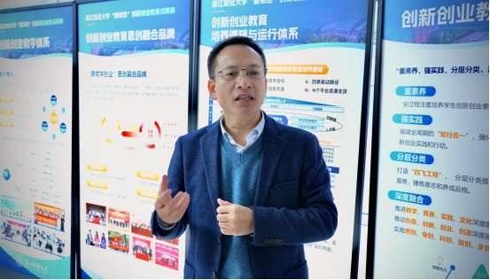 義烏工商職業(yè)技術學院創(chuàng)業(yè)管理處副處長丁文劍分享了學校秉持“創(chuàng)業(yè)立身”校訓,將創(chuàng)新創(chuàng)業(yè)理念深植于人才培養(yǎng)體系,升級創(chuàng)業(yè)園、創(chuàng)意園、科創(chuàng)園三個平臺,大力培養(yǎng)高素質人才,走出了一條以“創(chuàng)”立校的特色辦學之路。