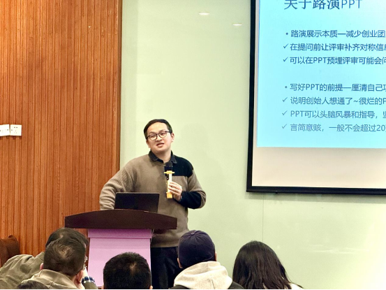 科智新創(chuàng)投管理合伙人黃超以“創(chuàng)業(yè)團隊股權融資&BP及溝通呈現(xiàn)”為主題授課,聚焦路演溝通思維、投融資對接流程、商業(yè)計劃書常見誤區(qū)三大核心,為教師、學生提供針對性指導,助力提升大學生創(chuàng)業(yè)項目孵化與落地支持能力。