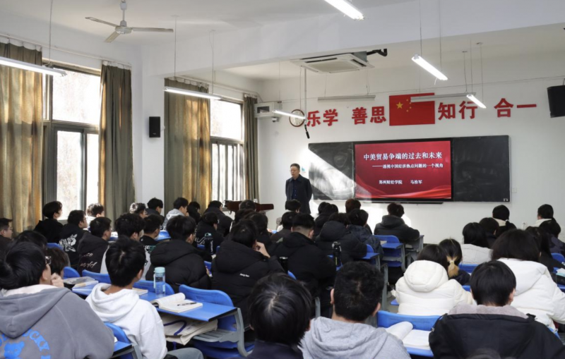 為深入學習貫徹黨的二十屆四中全會精神,全面落實習近平總書記關(guān)于思政課建設的重要指示,進一步加強學校思政課內(nèi)涵式建設,充分發(fā)揮領導干部在立德樹人中的示范引領作用,11月26日上午,校黨委書記馬治軍以《中美貿(mào)易爭端的過去和未來——透視中國經(jīng)濟熱點問題的一個視角》為題,分別為學校2024級軟工本4班、2024級智制本4班的學生講授了一堂立意深遠、內(nèi)容翔實的思政課,引導青年學子在百年未有之大變局中認清大勢、堅定自信、勇?lián)姑?/p>