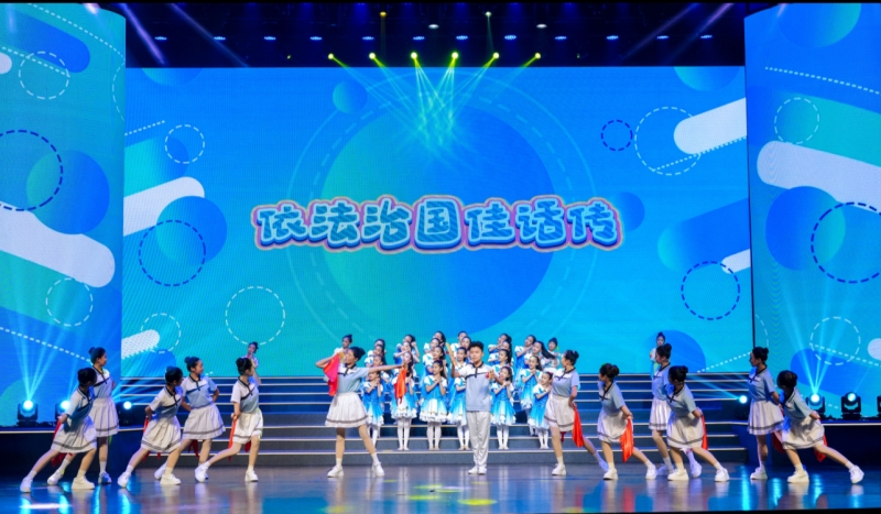 演出現(xiàn)場,清脆的快板聲響起,“打起竹板聽我言,我是憲法宣傳員,良法善治護航向,德潤人心正氣揚……”演員以飽滿的熱情、整齊的節(jié)奏,將憲法知識、法治觀念融入朗朗上口的唱詞中。節(jié)目高潮部分,全體演員齊誦“中國夢,少年強,憲法伴我走前方”,青春朝氣與堅定信仰感染全場。