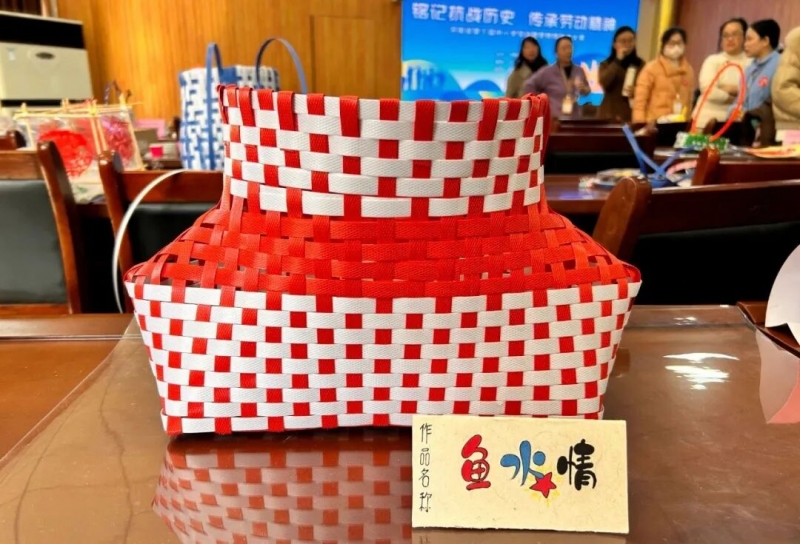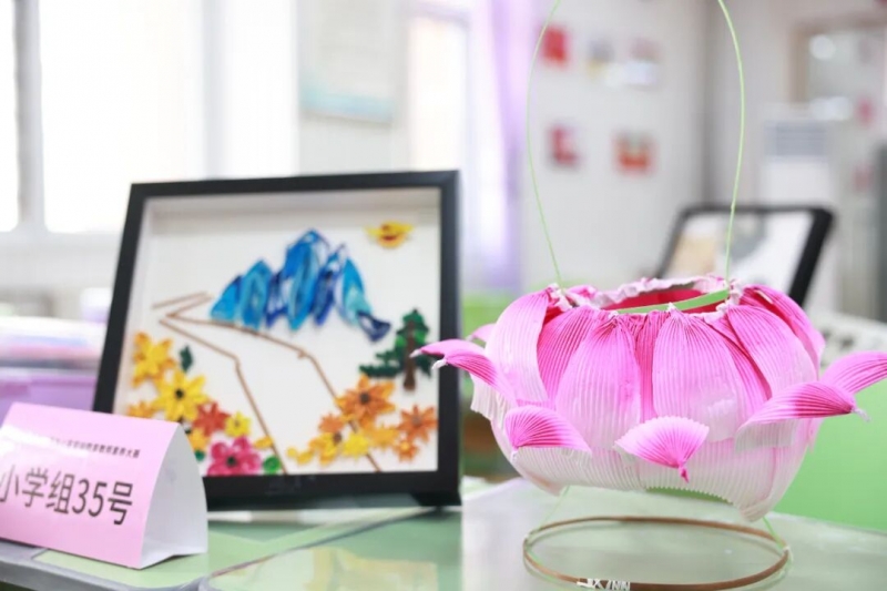 比賽現(xiàn)場,教師全神貫注、巧手制作,展現(xiàn)出扎實的勞動技能與教學(xué)素養(yǎng)。在必選項目紀(jì)念中國人民抗日戰(zhàn)爭勝利80周年主題創(chuàng)作中,小學(xué)組選手衍紙作品構(gòu)思新穎、主題鮮明,表達(dá)有創(chuàng)意,藝術(shù)手法運用得當(dāng),色彩協(xié)調(diào)、自然雅觀;中學(xué)組選手利用彩色打包帶編制一件抗戰(zhàn)時群眾常用器物,造型規(guī)整、技法嫻熟,突出了實用性。在自選項目展示中,選手們結(jié)合地域特色及自身特長,制作了手工燈籠、布藝編制、布貼畫、麥草畫、虎頭帽、手工布鞋等具有代表性的作品。