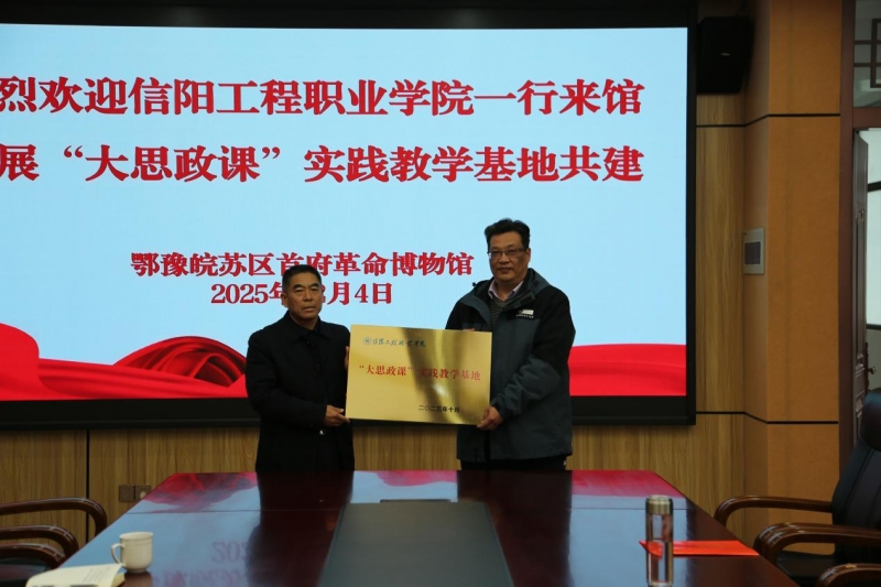 12月4日,信陽工程職業(yè)學院“大思政課”實踐教學基地簽約揭牌儀式在鄂豫皖蘇區(qū)首府革命博物館舉行。此次校館攜手,旨在深度挖掘紅色資源育人價值,推動思政小課堂與社會大課堂有機融合,為落實立德樹人根本任務搭建重要平臺。鄂豫皖蘇區(qū)首府革命博物館副館長李森,信陽工程職業(yè)學院常務副校長楊金國等雙方工作人員、教師代表共同出席儀式。