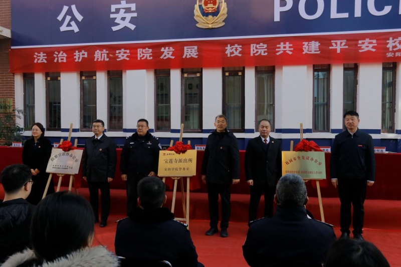 與會(huì)領(lǐng)導(dǎo)共同為“檢察官聯(lián)絡(luò)辦公室”“寶蓮寺派出所安陽學(xué)院警務(wù)室”“文峰區(qū)人民法院校園安全先議辦公室”揭牌。隨著紅綢落下,這一集法治宣傳、安全防范、矛盾調(diào)處、應(yīng)急處置功能于一體的“零距離”服務(wù)平臺(tái)正式投入運(yùn)行。