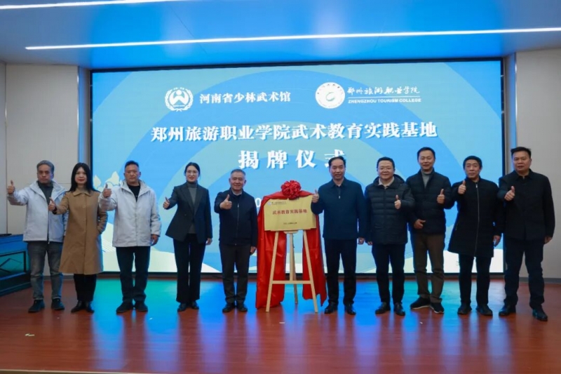 12月4日上午,鄭州旅游職業(yè)學(xué)院與河南省少林武術(shù)館合作簽約暨“武術(shù)教育實(shí)踐基地”揭牌儀式在登封舉行。鄭州旅游職業(yè)學(xué)院黨委副書(shū)記、校長(zhǎng)肖世才,黨委委員、副校長(zhǎng)張建軍,合作發(fā)展處處長(zhǎng)朱宇、體育學(xué)院院長(zhǎng)王軍紅、合作發(fā)展處副處長(zhǎng)趙啟杰;河南省少林武術(shù)館館長(zhǎng)陳俊杰、副館長(zhǎng)劉姍姍、研學(xué)中心主任趙朝霞和國(guó)際教學(xué)表演部主任焦曉偉等領(lǐng)導(dǎo)共同出席,標(biāo)志著校館合作正式啟動(dòng),共啟文旅融合育人新篇章。