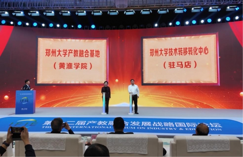 開(kāi)幕式上,鄭州大學(xué)技術(shù)轉(zhuǎn)移轉(zhuǎn)化中心(駐馬店)和鄭州大學(xué)產(chǎn)教融合基地(黃淮學(xué)院)同步揭牌