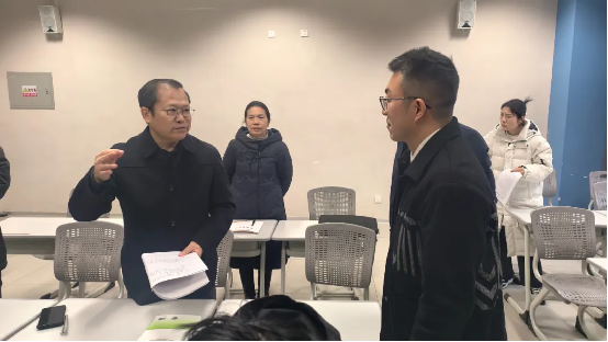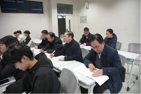為切實(shí)提升思政課鑄魂育人實(shí)效,12月2日下午,鄭州智能科技職業(yè)學(xué)院校長王廣國深入教學(xué)一線,采取“隨機(jī)抽課,推門聽課”的方式,現(xiàn)場聽評思政課,并與思政課教師進(jìn)行座談交流。副校長張保來、韓萬兵及教務(wù)科研處、黨委辦公室、馬克思主義學(xué)院等相關(guān)部門負(fù)責(zé)人陪同參加此次活動(dòng)。