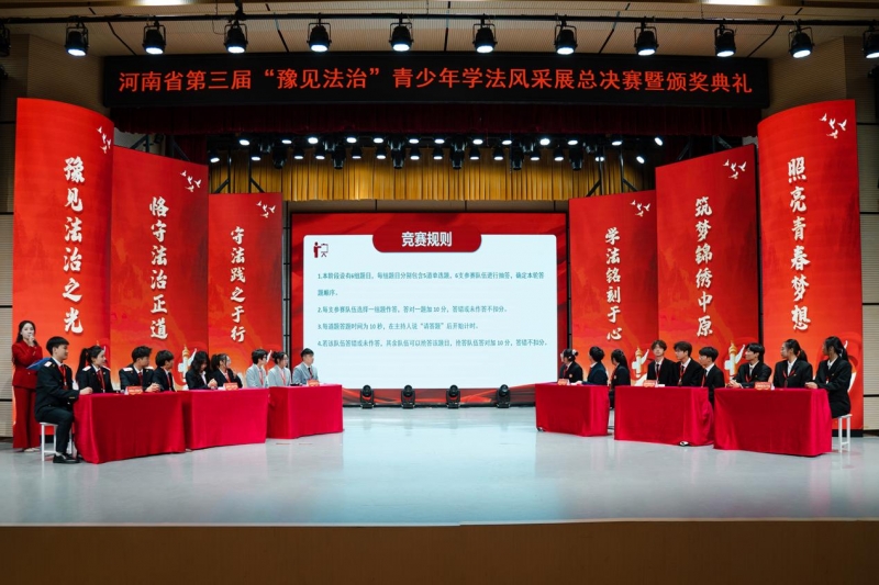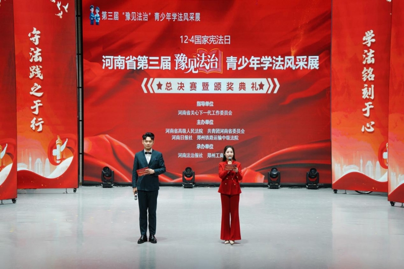 12月4日,河南省第三屆“豫見法治”青少年學(xué)法風(fēng)采展總決賽暨頒獎典禮在鄭州工商學(xué)院宇華講堂圓滿落幕。本次大賽以“法治河南?平安校園”為主題,在河南省關(guān)心下一代工作委員會指導(dǎo)下,由河南省高級人民法院、共青團(tuán)河南省委員會、河南日報(bào)社、鄭州鐵路運(yùn)輸中級人民法院聯(lián)合主辦,河南法治報(bào)社與鄭州工商學(xué)院共同承辦。省關(guān)工委副主任趙鐵軍,省人民法院關(guān)工委執(zhí)行副主任劉明,鄭州鐵路運(yùn)輸中級人民法院黨組書記、院長趙琦婷,河南日報(bào)社黨委委員、副社長王大慶,共青團(tuán)河南省委權(quán)益和社會工作部部長樊宸雨,河南法治報(bào)社社長兼總編輯童浩麟,鄭州工商學(xué)院常務(wù)副校長王提、副校長王瑩等出席活動。全國人大代表石聚彬、買世蕊作為特邀嘉賓蒞臨指導(dǎo)點(diǎn)評。大賽以法治引領(lǐng)青春航向,以平安筑牢校園基石,以競賽激發(fā)學(xué)法熱情,匯聚全省青少年法治英才,全面展現(xiàn)了新時代青少年學(xué)法風(fēng)采。