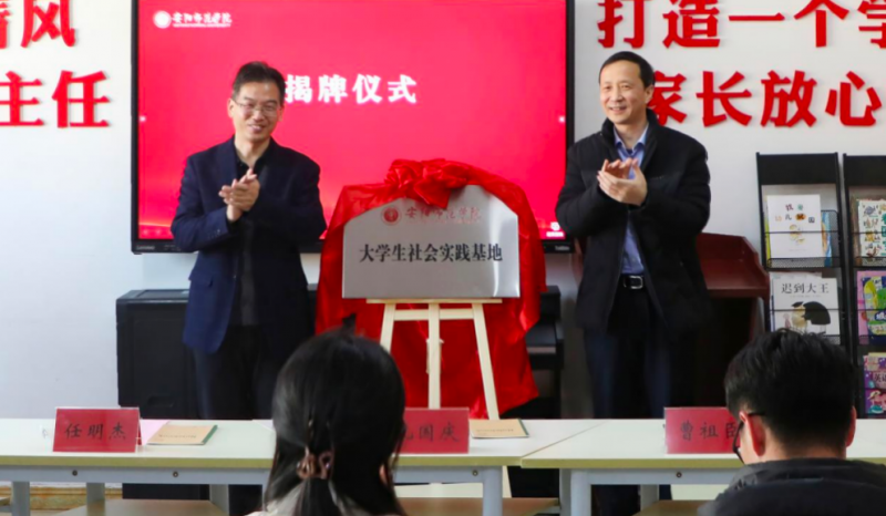 孔國慶和曹祖臣共同為安陽師范學院大學生社會實踐基地揭牌。