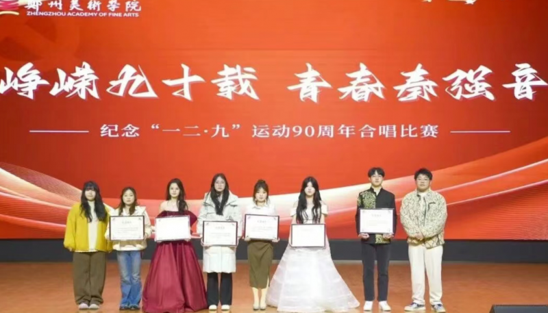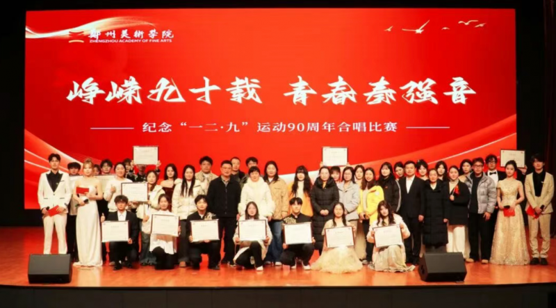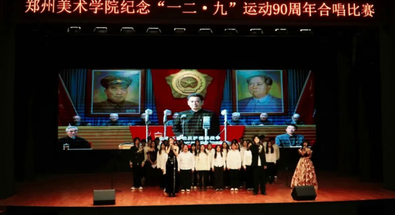 12月4日,鄭州美術(shù)學院紀念“一二·九”運動90周年合唱比賽在圖書館報告廳隆重舉行。全校師生以歌聲為筆、以旋律為墨,在經(jīng)典傳唱中回望崢嶸歲月,在激昂樂章里續(xù)寫青春華章,用美術(shù)學子特有的赤誠與擔當,致敬那段永不褪色的革命記憶。