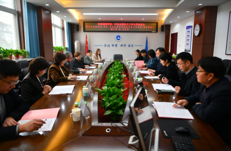 12月9日,哈薩克斯坦阿拉木圖技術(shù)大學(xué)科研副校長阿利耶夫·巴赫季爾·阿齊姆焦諾維奇、國際關(guān)系與學(xué)術(shù)交流處處長馬迪娜·阿里亞羅娃、教育方法管理處處長努爾蘇拉·阿赫梅托娃、工程與信息技術(shù)學(xué)院院長阿伊努爾·奧爾曼別科娃、食品技術(shù)系主任艾古爾·泰耶娃一行5人到河南城建學(xué)院訪問交流。