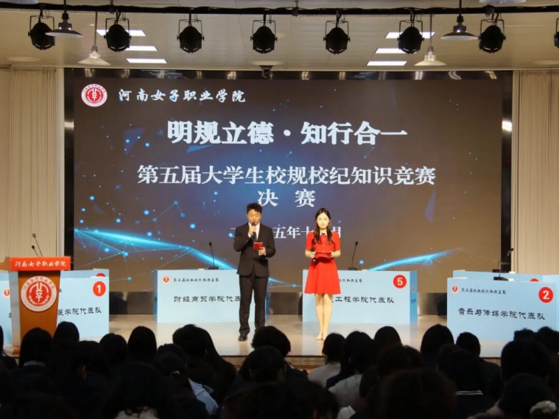 為深入貫徹立德樹人根本任務(wù),推進(jìn)依法治校,引導(dǎo)廣大學(xué)生熟知、踐行校規(guī)校紀(jì),營(yíng)造文明有序、積極向上的校園氛圍,近日,河南女子職業(yè)學(xué)院舉辦第五屆“明規(guī)立德·知行合一”大學(xué)生校規(guī)校紀(jì)知識(shí)競(jìng)賽決賽。副校長(zhǎng)徐紅娟出席,黨委學(xué)工部、各二級(jí)學(xué)院負(fù)責(zé)人、指導(dǎo)教師及學(xué)生代表500余人共同觀摩本次比賽。