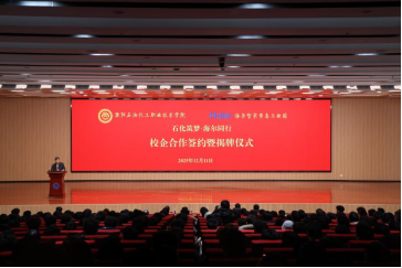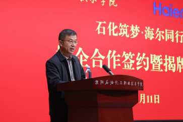 12月11日上午,濮陽(yáng)石油化工職業(yè)技術(shù)學(xué)院與海爾智家黃島工業(yè)園戰(zhàn)略合作簽約儀式,暨青島海爾電子塑膠有限公司“智能制造技能人才培養(yǎng)基地” 揭牌儀式在學(xué)校報(bào)告廳舉行。青島海爾黃島園區(qū)校企合作高級(jí)經(jīng)理邵棟、青島海爾電子塑膠有限公司制造總監(jiān)蘇振靜,學(xué)校副院長(zhǎng)趙懷森出席儀式,雙方相關(guān)部門(mén)負(fù)責(zé)人、師生代表600余人參加活動(dòng)。