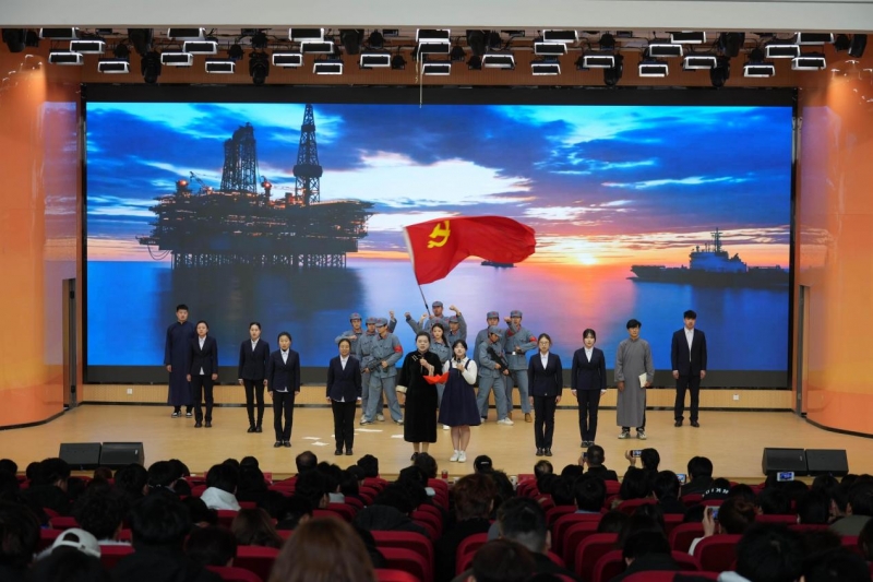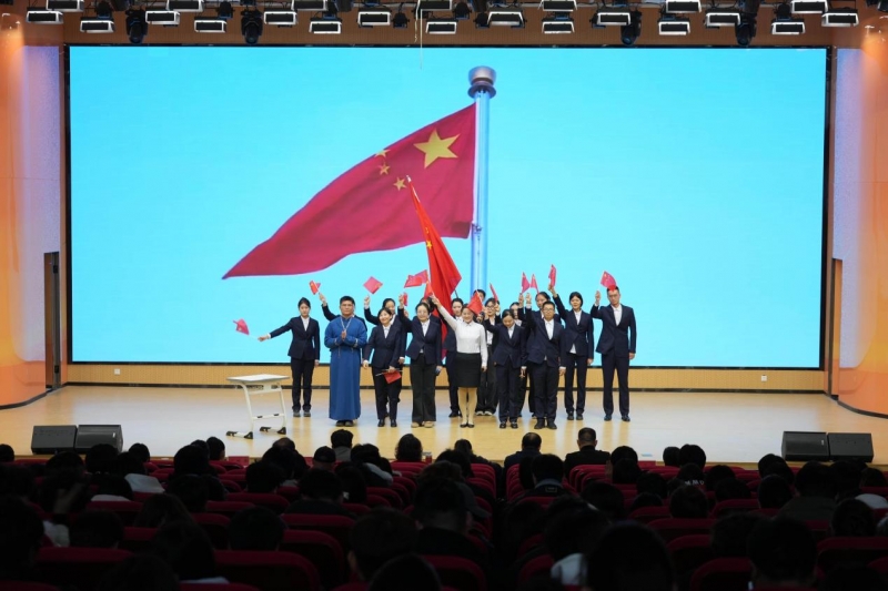 決賽現(xiàn)場,智能工程學院學生的《舞龍舞獅》表演拉開帷幕。各參賽隊伍通過脫稿誦讀、情景再現(xiàn)等形式演繹經(jīng)典,《一束明亮的光》《紅船載夢山河如愿》等作品深情回顧黨的奮斗歷程。《南京南京》以震撼人心的敘事喚醒歷史記憶,而《可愛的中國》聯(lián)袂展演則從多維度詮釋家國情懷。藝術(shù)傳媒學院黨支部的《紅鐵》通過舞臺劇形式展現(xiàn)革命精神,智能工程學院的《青春跟黨走》彰顯青年擔當。