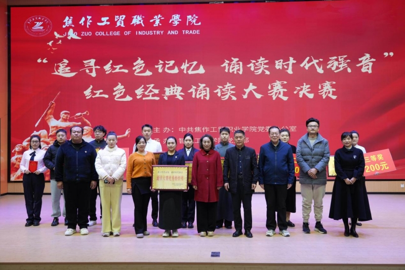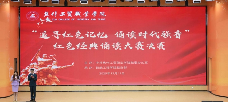 12月11日下午,焦作工貿(mào)職業(yè)學院“追尋紅色記憶 誦讀時代強音”紅色經(jīng)典誦讀大賽決賽在山陽校區(qū)圖書館報告廳圓滿落幕。本次大賽由校黨委辦公室主辦,智能工程學院黨支部承辦,歷時20天,吸引全校15個基層黨支部參與,最終7支隊伍晉級決賽。