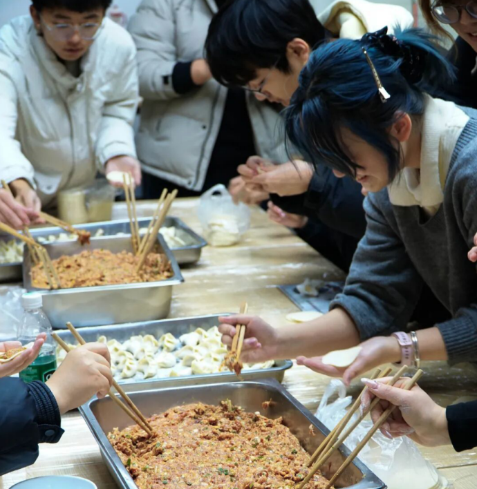 清晨的寒意尚未褪去,洛陽理工學(xué)院子衿餐廳卻已暖意融融。12月14日上午,為迎接冬至,人工智能學(xué)院在這里舉行了一場別開生面的“家宴”——一場以“黨建引領(lǐng),團建護航,‘餃’上好運,研途順暢”為主題的黨團活動。學(xué)院老師、團學(xué)干部與考研學(xué)子圍坐一堂,搟皮、調(diào)餡、包餃子,歡聲笑語中,面團與餡料交織出的不僅是迎接節(jié)日的香氣,更是一場關(guān)于陪伴、關(guān)懷與成長的育人創(chuàng)新實踐。