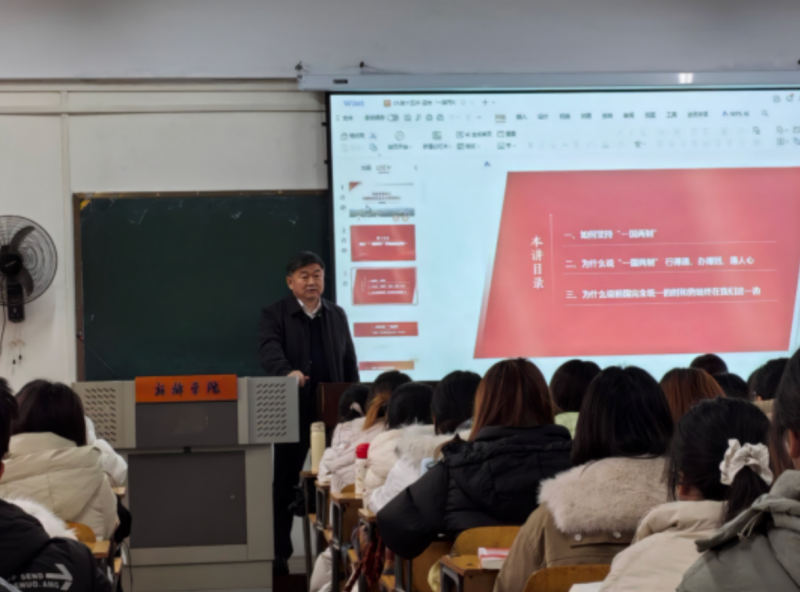 近日,新鄉(xiāng)學(xué)院黨委書(shū)記王孝俊走進(jìn)教室,為2024級(jí)英語(yǔ)本科1班、漢語(yǔ)言文學(xué)本科1班的同學(xué)講授思政課。授課內(nèi)容為《習(xí)近平新時(shí)代中國(guó)特色社會(huì)主義思想概論》課程第十五章《堅(jiān)持“一國(guó)兩制”和推進(jìn)祖國(guó)統(tǒng)一》,圍繞“如何全面準(zhǔn)確理解和貫徹‘一國(guó)兩制’方針”“為什么說(shuō)‘一國(guó)兩制’是保持港澳長(zhǎng)期繁榮穩(wěn)定的最佳制度”“為什么說(shuō)祖國(guó)完全統(tǒng)一的時(shí)和勢(shì)始終在我們這一邊”三個(gè)核心問(wèn)題展開(kāi)教學(xué)。