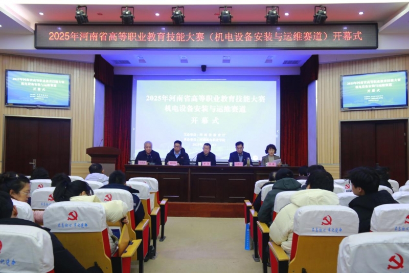 12月12日下午,河南省高等職業(yè)教育技能大賽機電設(shè)備安裝與運維賽道開幕式在河南機電職業(yè)學(xué)院產(chǎn)研樓一樓報告廳舉行。河南省教育廳職成教處副處長平奇、河南機電職業(yè)學(xué)院校長閔志宇、大賽仲裁長河南職業(yè)技術(shù)學(xué)院副校長肖瓏、大賽裁判長劉仲海教授等領(lǐng)導(dǎo)和嘉賓出席開幕式,各參賽院校指導(dǎo)教師、參賽選手及師生代表參加開幕式。開幕式由河南機電職業(yè)學(xué)院副校長王慶海主持。