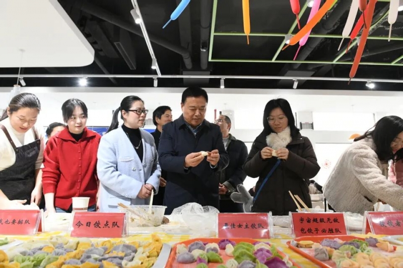 機(jī)械工程學(xué)院活動(dòng)現(xiàn)場(chǎng)抓零食活動(dòng)趣味十足,“盲喂餃子”引得全場(chǎng)捧腹;智能建造學(xué)院現(xiàn)場(chǎng)四大特色攤位前人頭攢動(dòng),師生們親手制作雪梨暖飲、酸甜冰糖葫蘆、解鎖湯圓盲盒口味、協(xié)作參與包餃子大賽;信息與電子工程學(xué)院現(xiàn)場(chǎng)設(shè)置了非遺系列展覽,剪紙的精巧、木版年畫(huà)的古樸,吸引眾人駐足欣賞;經(jīng)濟(jì)與管理學(xué)院活動(dòng)現(xiàn)場(chǎng)處處洋溢著歡樂(lè)氣息,校領(lǐng)導(dǎo)與過(guò)集體生日的同學(xué)們?cè)诟杪曋性S愿吹燭,定格暖心瞬間;教育與現(xiàn)代藝術(shù)學(xué)院的冬至場(chǎng)域里,非遺的韻、創(chuàng)意的光與餃子的香,把冬日的冷浸成了暖;醫(yī)學(xué)院歌舞展演、包餃子爭(zhēng)霸賽、輔導(dǎo)員寵粉行動(dòng)、社團(tuán)文化體驗(yàn)等多元活動(dòng)輪番上演。