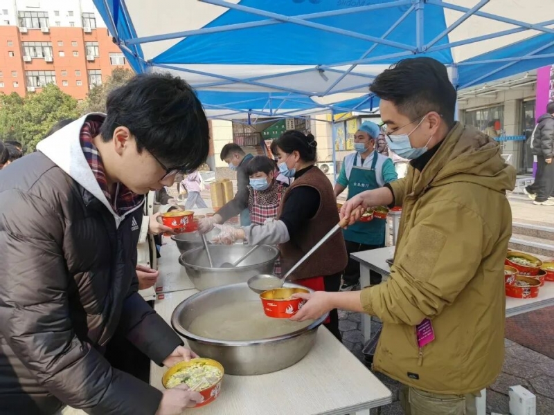 與此同時(shí),在兩個(gè)校區(qū)同步開(kāi)展了“商工羊肉湯·驅(qū)寒又暖胃”免費(fèi)供餐活動(dòng)。一碗碗熱氣騰騰的羊肉湯,以最地道的家鄉(xiāng)味,為同學(xué)們和冬日辛勤工作的領(lǐng)導(dǎo)老師、努力備戰(zhàn)考研的大四學(xué)子、美化校園的工勤人員、值班值守的安保師傅送去實(shí)實(shí)在在的美味,讓“家校”的溫暖從舌尖直抵心田。