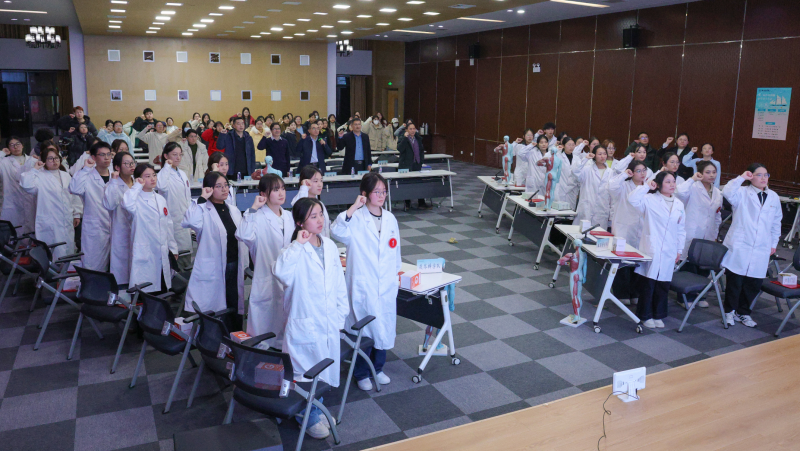 活動(dòng)接近尾聲,楊國平帶領(lǐng)全體師生重溫醫(yī)學(xué)生誓言。肅穆的氛圍中,師生們肅立齊聲朗誦,鏗鏘誓言不僅重申了醫(yī)學(xué)事業(yè)“敬佑生命、救死扶傷”的崇高使命,更強(qiáng)化了醫(yī)學(xué)生“無私奉獻(xiàn)、恪守醫(yī)德”的職業(yè)信念,為整場(chǎng)活動(dòng)畫上圓滿句點(diǎn),也為學(xué)子們的醫(yī)學(xué)之路注入精神力量。