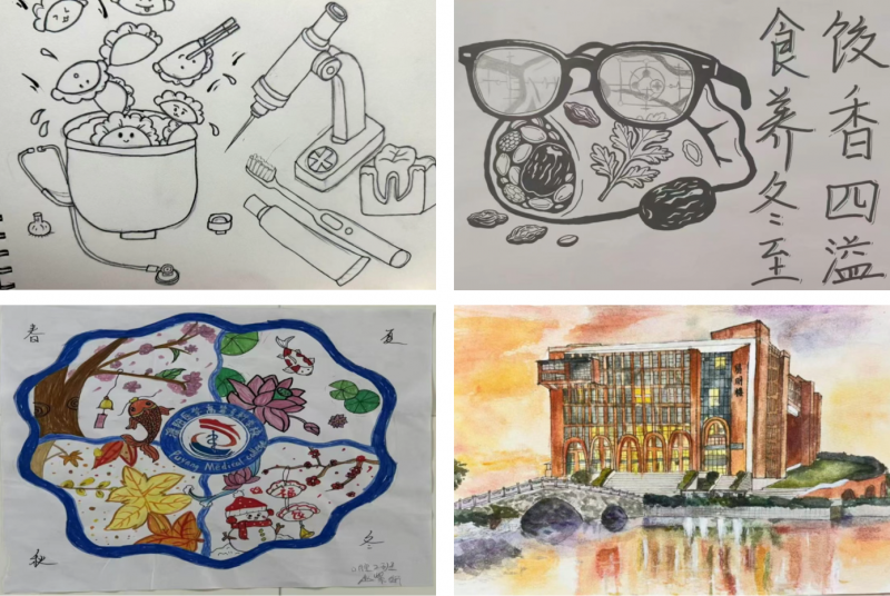 當(dāng)藝術(shù)創(chuàng)意遇上醫(yī)學(xué)專業(yè),碰撞出獨(dú)具特色的文化火花。醫(yī)學(xué)技術(shù)學(xué)院發(fā)起“繪冬至雅韻,融醫(yī)學(xué)匠心”創(chuàng)意繪畫活動(dòng),同學(xué)們巧妙地將專業(yè)元素融入畫卷。《齒暖冬至》生動(dòng)展現(xiàn)口腔健康關(guān)懷,《食養(yǎng)冬至,餃香四溢》則將養(yǎng)生知識(shí)可視化,《醫(yī)苑四季韶光》《紅墻映晚輝》等一幅幅作品,描繪了校園冬景,同學(xué)們用五彩畫筆和翰墨丹青,將節(jié)日祝福與專業(yè)理解傾注于創(chuàng)作之中,實(shí)現(xiàn)了美育與專業(yè)教育的有機(jī)融合。