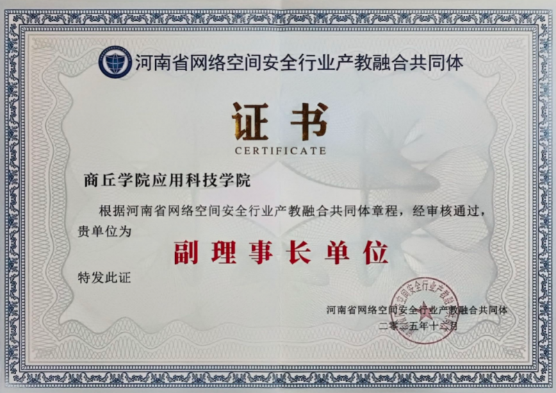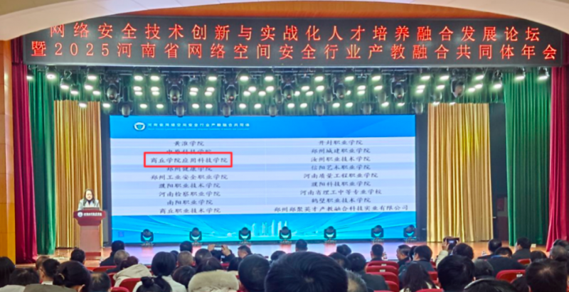 2025年12月20日,河南省網(wǎng)絡(luò)空間安全行業(yè)產(chǎn)教融合共同體年會(huì)在河南經(jīng)貿(mào)職業(yè)學(xué)院順利召開。河南省教育廳職業(yè)教育與成人教育處三級(jí)調(diào)研員高根立、河南省高等學(xué)校計(jì)算機(jī)教育研究會(huì)理事長(zhǎng)甘勇、河南省網(wǎng)絡(luò)空間安全行業(yè)產(chǎn)教融合共同體理事長(zhǎng)宋傳德等出席會(huì)議并分別致辭。商丘學(xué)院應(yīng)用科技學(xué)院計(jì)算機(jī)工程學(xué)院黨總支書記、院長(zhǎng)蘇繼斌及網(wǎng)絡(luò)工程教研室主任賀飛翔代表學(xué)校參加本次會(huì)議。