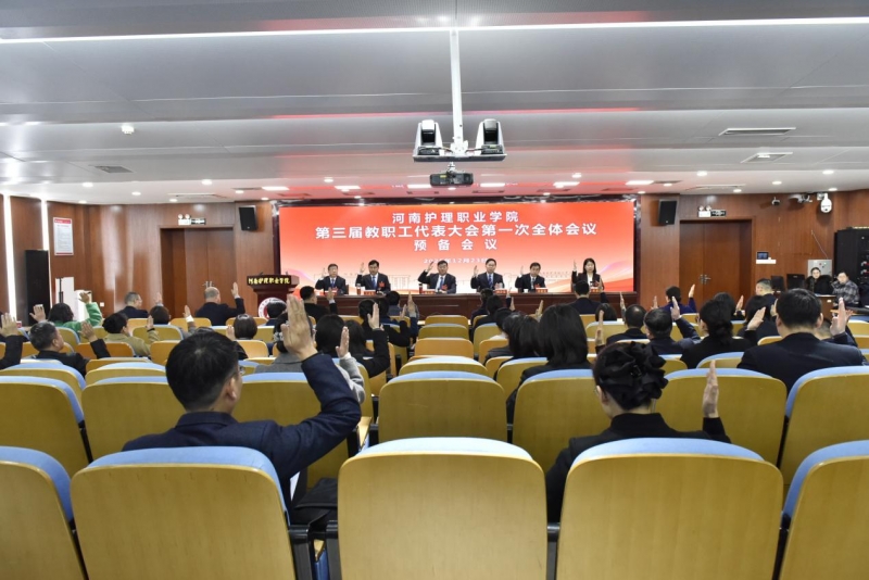 12月23日上午,河南護(hù)理職業(yè)學(xué)院第三屆教職工代表大會(huì)第一次全體會(huì)議在學(xué)術(shù)報(bào)告廳一樓召開。黨委書記、院長(zhǎng)胡仕坤,黨委副書記、工會(huì)主席鐘會(huì)亮,紀(jì)委書記王忠偉,副院長(zhǎng)黃敬堂,副院長(zhǎng)郭海旺,副院長(zhǎng)常慧敏出席大會(huì)。正式代表、特邀嘉賓、列席代表共100余人參加大會(huì)。大會(huì)由王忠偉主持。