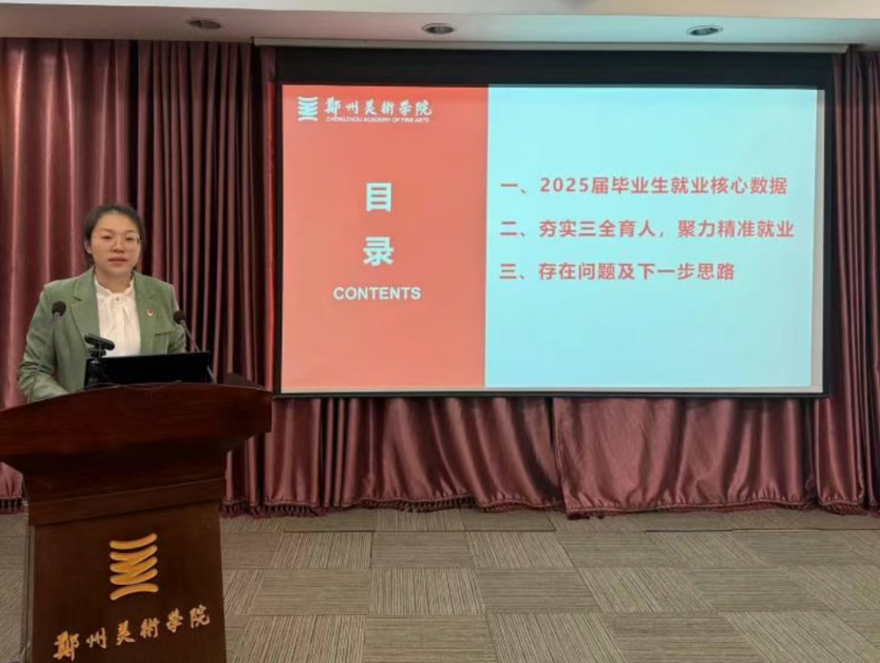 2025年12月26日上午,鄭州美術(shù)學(xué)院在主教樓202會議室召開了2026年畢業(yè)生就業(yè)創(chuàng)業(yè)工作會議。會議旨在全面總結(jié)2025年就業(yè)創(chuàng)業(yè)工作,分析研判當(dāng)前形勢,并對2026年畢業(yè)生就業(yè)創(chuàng)業(yè)重點任務(wù)進行系統(tǒng)部署。學(xué)校理事長王遠,黨委書記王冰,校長石品,副校長楊鋼、丁孝佳出席會議。學(xué)校就業(yè)創(chuàng)業(yè)工作領(lǐng)導(dǎo)小組成員、各系室主任及就業(yè)專員、就業(yè)指導(dǎo)中心全體成員、畢業(yè)班輔導(dǎo)員參加會議。會議由黨委副書記、副校長李亞飛主持。