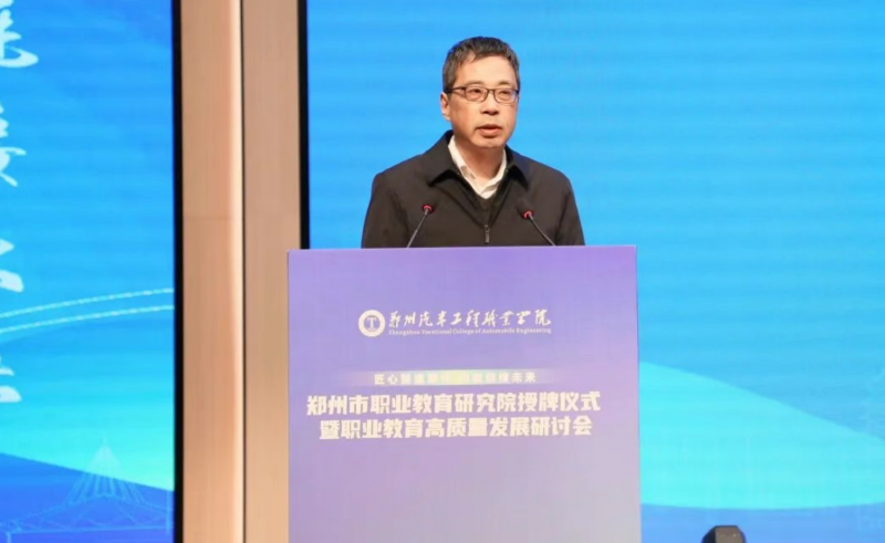 河南省教育發(fā)展戰(zhàn)略學(xué)會(huì)會(huì)長(zhǎng)、教育廳原副廳長(zhǎng)陳垠亭在致辭中表示,河南作為全國(guó)首批職業(yè)教育創(chuàng)新發(fā)展高地,歷來將職業(yè)教育擺在突出位置。他指出,當(dāng)前正值新科技革命與產(chǎn)業(yè)變革的關(guān)鍵期,我省近期印發(fā)的《教育強(qiáng)省建設(shè)規(guī)劃綱要》及配套行動(dòng)計(jì)劃為職業(yè)教育改革發(fā)展明確了方向、提出了更高要求。他強(qiáng)調(diào),鄭州作為國(guó)家產(chǎn)教融合試點(diǎn)城市,職業(yè)教育資源豐富、基礎(chǔ)扎實(shí),鄭州汽車工程職業(yè)學(xué)院依托汽車產(chǎn)業(yè)園區(qū)辦學(xué),院企合作緊密,產(chǎn)教融合深入,具有很好的示范性,將研究院設(shè)在鄭州汽車工程職業(yè)學(xué)院,具有獨(dú)特的優(yōu)勢(shì)。他殷切期盼,在職業(yè)教育教學(xué)改革與人才培養(yǎng)創(chuàng)新的浪潮中,在教育強(qiáng)省、強(qiáng)市建設(shè)加速推進(jìn)的進(jìn)程中,在服務(wù)鄭州國(guó)家中心城市建設(shè)和現(xiàn)代化產(chǎn)業(yè)體系發(fā)展的生動(dòng)實(shí)踐中,研究院能夠蓬勃發(fā)展、不斷壯大。省教育廳教育強(qiáng)省研究院和省教育發(fā)展戰(zhàn)略學(xué)會(huì)愿與鄭州市職業(yè)教育研究院以及各位專家一道,瞄準(zhǔn)教育強(qiáng)省建設(shè)的戰(zhàn)略目標(biāo),緊扣職業(yè)教育改革發(fā)展的部署,強(qiáng)化協(xié)同創(chuàng)新,全力打造高水平研究成果,為教育強(qiáng)省建設(shè)貢獻(xiàn)智庫力量。