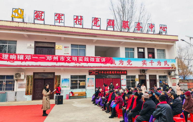 12月26日,在河南工業(yè)大學定點幫扶單位鄧州市張村鎮(zhèn)冠軍村的新時代文明實踐站熱鬧非凡,一場以“推進移風易俗 樹立文明鄉(xiāng)風”為主題的新時代文明實踐活動在這里舉辦。此次活動整合了鄧州市人民法院、市公安局、醫(yī)保局等多方資源,為村民送上了一場集普法教育、政策宣講、文藝展演和便民服務(wù)于一體的“暖心大禮包”,旨在傳播文明理念,助力鄉(xiāng)村振興。