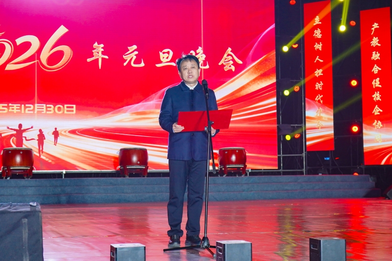 晚會(huì)開(kāi)始前,李樹(shù)偉致辭。他首先代表學(xué)校向各位領(lǐng)導(dǎo)和嘉賓的到來(lái)表示熱烈的歡迎,向全體師生致以誠(chéng)摯的問(wèn)候。他指出,回首2025年,學(xué)校深入學(xué)習(xí)貫徹黨的二十屆四中全會(huì)精神,扎實(shí)推動(dòng)黨中央、國(guó)家重要政策落到實(shí)處;順利入選第二批河南省雙高校,成為了學(xué)校高質(zhì)量特色發(fā)展新引擎;圓滿承辦2025年河南省行業(yè)職業(yè)技能競(jìng)賽,展現(xiàn)了學(xué)校辦學(xué)硬核力量;學(xué)生再獲世賽金獎(jiǎng),詮釋了“技炫青春,能創(chuàng)未來(lái)”的職教精神;深化教育綜合改革,將課堂延伸至“百里廠礦”,國(guó)家級(jí)團(tuán)隊(duì)通過(guò)驗(yàn)收,國(guó)家級(jí)項(xiàng)目順利結(jié)項(xiàng),省級(jí)質(zhì)量工程項(xiàng)目30余項(xiàng),彰顯了產(chǎn)教融合新成果;長(zhǎng)三角、珠三角就業(yè)聯(lián)盟成立,搭建起人才培養(yǎng)就業(yè)需求“橋梁”,學(xué)生就業(yè)去向落實(shí)率全省領(lǐng)先;首批巴基斯坦留學(xué)生順利報(bào)到,學(xué)校國(guó)際化辦學(xué)邁入新階段。展望2026,希望全體教師保持“胸懷強(qiáng)國(guó)志,錘煉強(qiáng)國(guó)技,勇建強(qiáng)國(guó)功”的信念,以矢志不渝的堅(jiān)韌,堅(jiān)決達(dá)成既定目標(biāo),以行穩(wěn)致遠(yuǎn)的睿智,共同傾力鑄就平職美好未來(lái)。希望全體同學(xué)珍惜“人人皆可出彩、人人皆能出彩”的偉大時(shí)代,錘煉過(guò)硬本領(lǐng),涵養(yǎng)工匠精神,將個(gè)人理想融入國(guó)家與地方產(chǎn)業(yè)發(fā)展大局,用勤勞雙手和智慧頭腦,成就自我、服務(wù)社會(huì)、開(kāi)創(chuàng)未來(lái)。