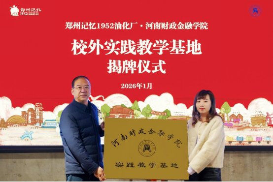 1月6日,河南財政金融學院與鄭州記憶1952油化廠旅游休閑街區(qū)校外實踐基地揭牌儀式在油化廠園區(qū)穹廬藝術中心舉行。該校副校長楊伯堅,鄭州記憶1952油化廠園區(qū)總經(jīng)理曹心荷,藝術設計學院負責人、師生代表參加。